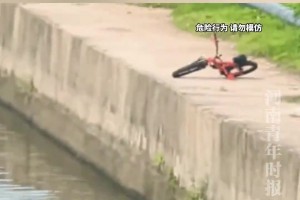 小孩意外落水深陷水中挣扎,热心路人见状抄起渔网火速施救