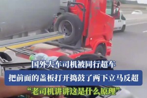 国外大车司机被同行超车,把前面的盖板打开捣鼓了两下立马反超