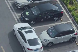 医院停车一车霸占两个车位,另一白车直接拦住出口