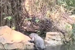 扬子鳄没爬上石头被游客嘲笑,“这只扬子鳄能让我笑一天”!